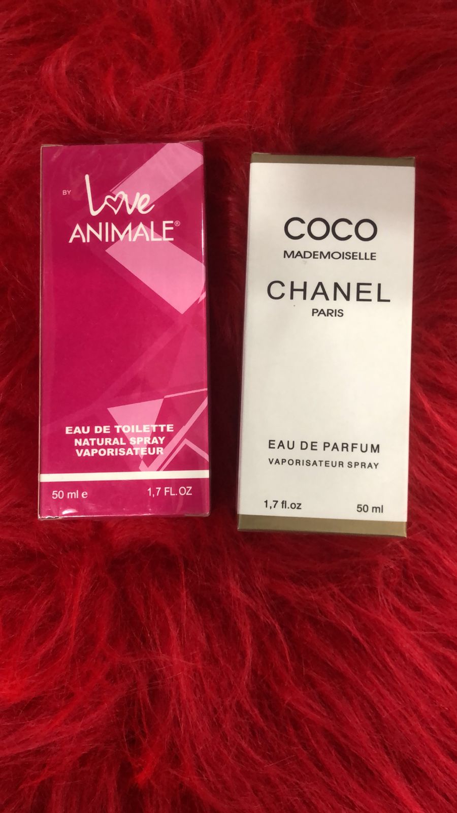 COCO MADEMOISELLE é um perfume feminino ambarado surpreendentemente fresco e de personalidade inconfundível, já o LOVE ANIMALE é daqueles perfumes que te levam direto para o paraíso, uma profusão de flores cor de rosa delicadas com uma fava tonka terrosa e gustativa..